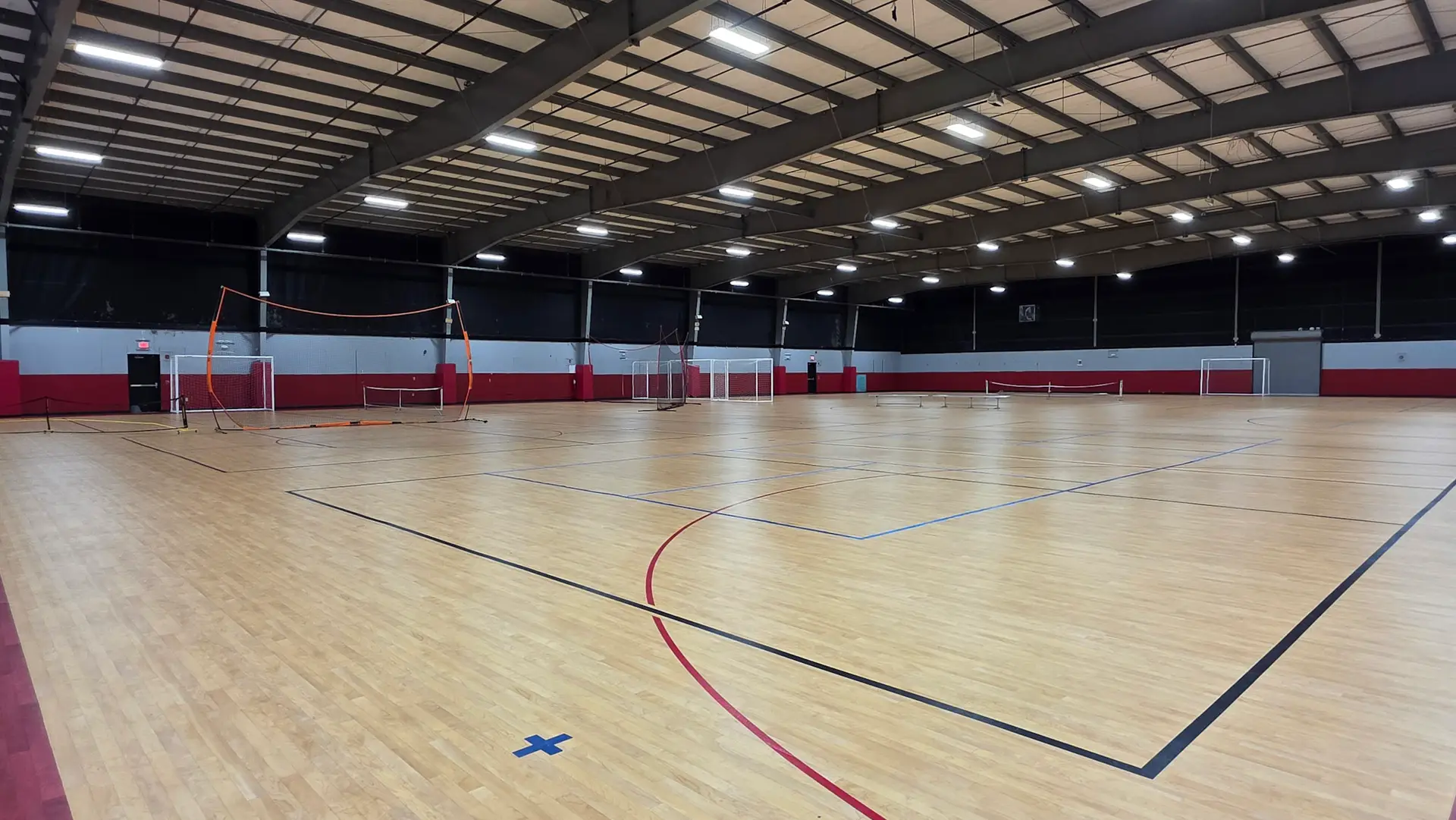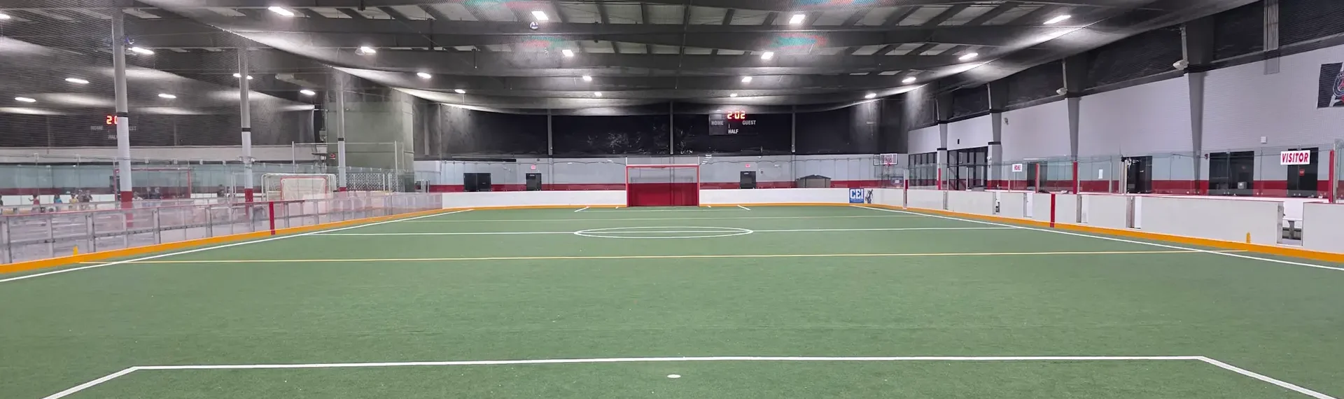 We have two indoor soccer fields, each 180 ft. x 75 ft. Indoor fields have electronic scoreboards.